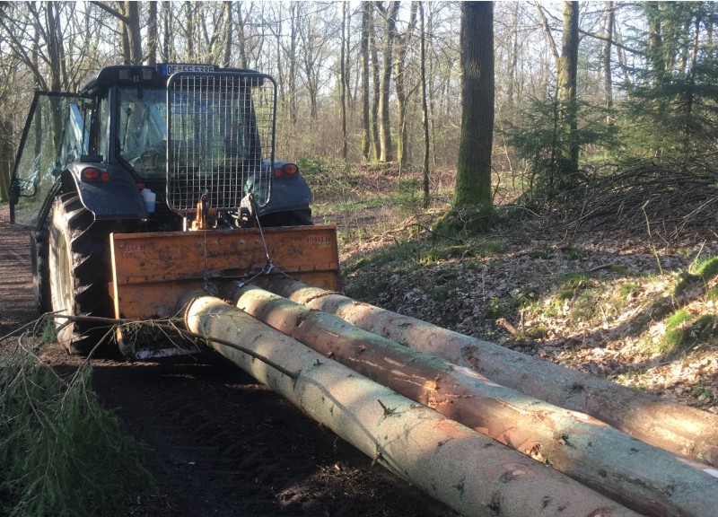 Mit Forstschlepper und Tragschlepper (oder englisch Forwarder genannt) wird das Holz aus dem Waldbestand zum Lagerplatz transportiert bzw. "gerückt", wie der Fachmann sagt. Da hierbei der Waldboden unter Umständen stark belastet wird, gilt es, auf eine bodenschonende Rückung zu achten. Als Ihr Fachbetrieb für Forstarbeiten verfügen wir über das Know-How, wie Aufstandsflächen vergrößert und Schlupf verhindert werden kann, und wann man besser zu Alternativen wie der Pferderückung oder der Rückung mit dem Eisernen Pferd greift.